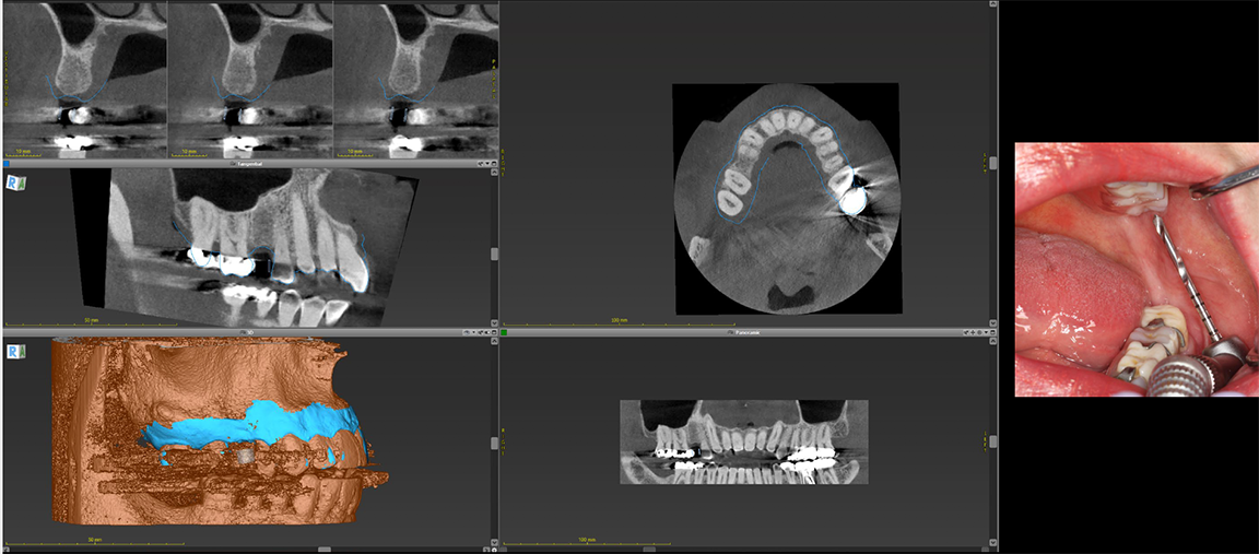 The dots between the arches on a CT scan are reference points that are valuable in treatment planning to coordinate data and visualize results to form a blueprint to use in laying the foundation and finding an anatomically correct location for implants (Figure 7). The result is a concerted plan that ends with good results in a predictable manner because the technology allows the practitioner to see everything during planning and surgery. It is not complicated, can happen in the same day, does not involve a protracted treatment planning process, and affords the flexibility to make changes intraoperatively, allowing the practitioner to see where changes would impact not just the patient anatomy, but the prosthetic anatomy.3,4